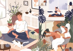 • 1000 pièces avec des illustrations délicates de détente, de yoga et de chats