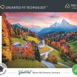 Plongez dans l’atmosphère pittoresque des contreforts alpins. Ce motif avec route sinueuse, petite église et feuillage automnal coloré sur fond de montagnes enneigées ravira les yeux et l’esprit. Grâce à la Unlimited Fit Technology (UFT), les images de la même série peuvent être raccordées avec précision pour créer de grands collages originaux sans limites.