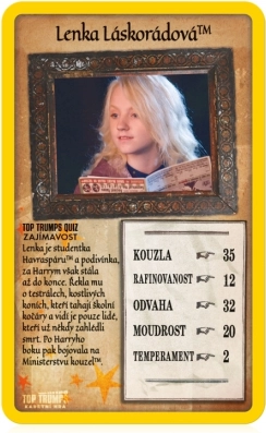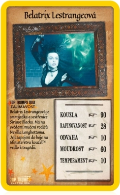 Plongez dans la cinquième année à Poudlard avec Top Trumps, édition Harry Potter et l’Ordre du Phénix. Le paquet comprend des héros et des antagonistes emblématiques – de Harry, Ron et Hermione à la professeure Ombrage, Bellatrix Lestrange et Lucius Malefoy. Chaque carte possède ses attributs, qui déterminent qui est le plus courageux, le plus intelligent ou le plus sournois.