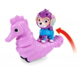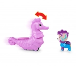 Nous vous présentons la figurine Coral de la collection Aqua Pups inspirée de la série Pat' Patrouille. Coral, à moitié sirène, porte une combinaison colorée et un casque, et sa tête est articulée. L'ensemble comprend également un hippocampe sur lequel Coral peut monter.