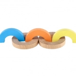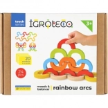 Les arcs et demi-cercles arc-en-ciel se combinent en tours, ponts et défis d’équilibre. Les enfants développent ainsi concentration, stabilité et perception de l’espace.