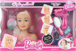 - Tête à coiffer, sèche-cheveux à piles, peigne, barrettes et autres accessoires