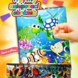 Décorez le motif de chevaux préimprimé à l’aide de autocollants pailletés et créez une image éclatante au format 20 × 29 cm. Le kit comprend 1 image préimprimée et 3 planches d’autocollants; le collage se fait par numéros – une activité idéale pour les enfants dès 6 ans.