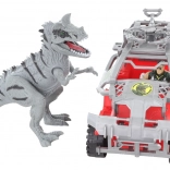 Cet ensemble comprend un dinosaure gris, une voiture tout-terrain et une figurine en tenue militaire pour une expérience de jeu ultime.