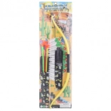 Le set indien comprend 1x arc d’environ 50 cm, 3x flèches avec étui d’environ 26 cm, 1x couteau avec étui d’environ 20 cm. Âge 3+.