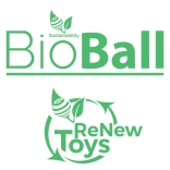 Support du jeu durable avec les logos BioBall et ReNew Toys, soulignant la production écologique et la responsabilité.