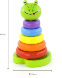 La pyramide empilable en bois Grenouille est un jouet idéal pour les enfants dès 2 ans. Elle est conçue pour aider à développer la coordination œil-main et renforcer la capacité de différenciation des couleurs. Le jouet se compose d’anneaux multicolores à empiler sur une base en bois avec une adorable grenouille au sommet.
