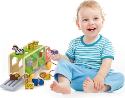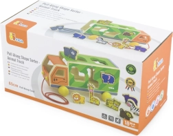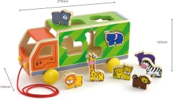 Adorable camion en bois à tirer avec animaux et boîte à formes qui ravira les petits explorateurs dès 18 mois. Grâce à 8 animaux en bois et aux ouvertures de tri, les enfants exercent la reconnaissance des formes, la motricité fine et la coordination œil–main. Ses dimensions compactes 27 × 12,5 × 12 cm et sa ficelle de traction en font un jouet idéal à la maison comme en voyage.