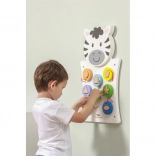 Jeu mural en bois Zebra de VIGA offre aux enfants une forme de jeu amusante et créative, où ils apprennent à reconnaître les formes et les couleurs grâce à un trieur avec des pièces en bois colorées.