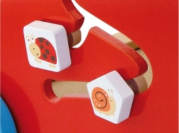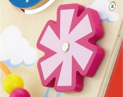Éléments rotatifs, petits animaux coulissants, boucle de perles et moulin favorisent la motricité fine, la patience et la compréhension des causes et des effets.