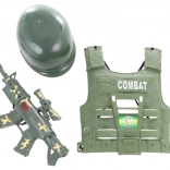 Ce set est parfait pour les enfants qui aiment jouer aux soldats. L'ensemble contient tout le nécessaire pour des jeux militaires réalistes : casque, gilet de combat et mitraillette. Tous les composants sont fabriqués en plastique résistant, sûr pour les jeunes enfants. Grâce aux détails réalistes et aux couleurs, les enfants s'immergeront dans le monde des aventures militaires.