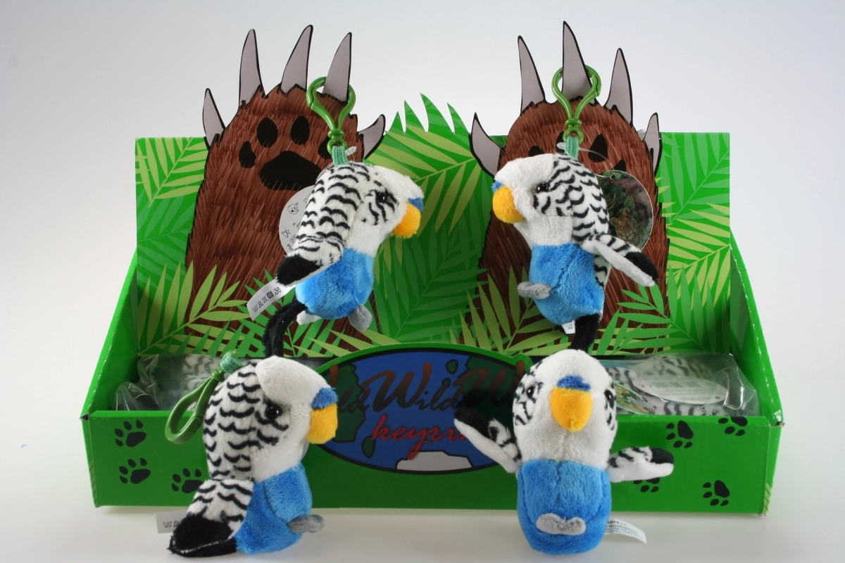Adorable perruche ondulée en peluche de couleur blanche en porte-clés, l’accessoire idéal pour vos clés, votre sac à dos ou votre sac à main. Matière toute douce, format compact d’environ 9 cm et fixation sûre en font un excellent cadeau pour les enfants comme pour les amoureux des oiseaux.