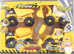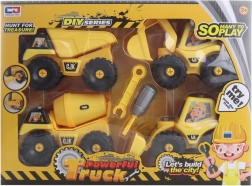 Construisez votre propre chantier avec ce coffret coloré de véhicules à visser. Les enfants assemblent et démontent facilement la chargeuse, la pelleteuse, la bétonnière et le camion-benne à l’aide du tournevis et de la clé fournis. Le jeu stimule la créativité, les compétences de coordination et apprend la patience de manière ludique.
