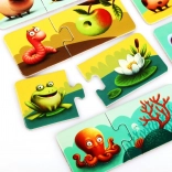 Plongez dans un apprentissage ludique avec le puzzle Puzzlika Ma maison. Les enfants associent l’image d’un animal à son habitat typique, développant naturellement leur raisonnement logique, leur vocabulaire et la coordination œil-main. Les grandes pièces, faciles à saisir, sont idéales pour les petites mains.