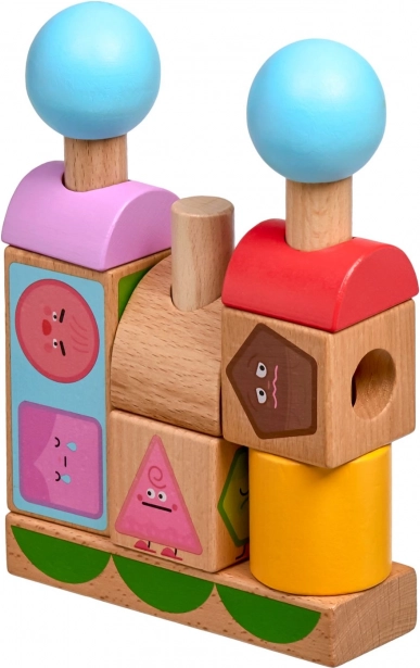 Grâce à la base en bois avec chevilles, les enfants placent facilement les formes selon les modèles et développent leur motricité fine et la coordination œil–main.