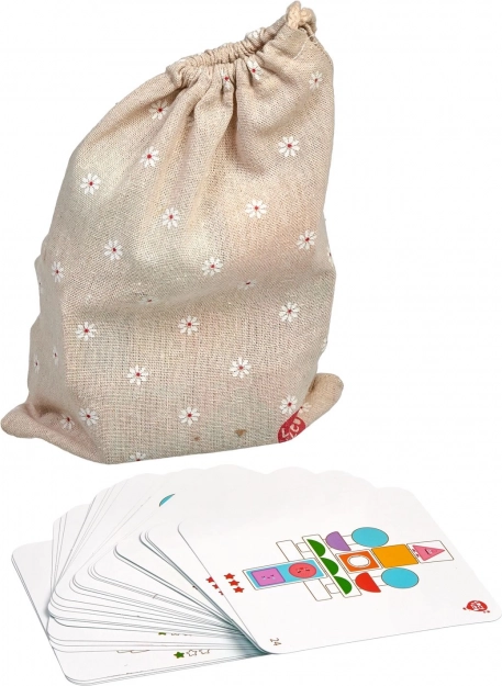 Le set comprend 24 cartes de difficulté variable. Les enfants entraînent la précision, la planification des étapes et la discrimination visuelle des formes et des couleurs.