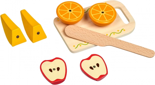Les pièces individuelles sont reliées par des aimants, permettant aux enfants de les « couper » en toute sécurité et de les réunir à nouveau. Idéal pour entraîner la motricité et jouer de façon réaliste.