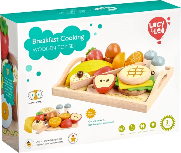 Ce set de jeu en bois reproduit fidèlement un petit-déjeuner copieux sur un plateau et invite les enfants à une infinité d’histoires. Les pièces d’aliments sont reliées par des aimants, afin que les enfants puissent les « couper » à plusieurs reprises avec le couteau en bois sur la planche et les reconstituer. Cela favorise l’apprentissage naturel, la coordination œil-main et l’imitation des activités des adultes.