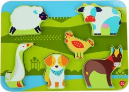 Le puzzle en bois sur le thème de la ferme plaira aux filles comme aux garçons grâce à ses couleurs intenses et à sa surface agréablement lisse. Chacun des 7 animaux a sa forme précise et l’enfant peut facilement l’insérer dans l’encoche correspondante. Grâce à leur taille et leur épaisseur, les pièces sont faciles à saisir et sûres pour le jeu autonome.