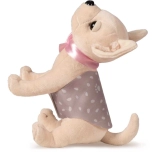 Le chien porte un vêtement à fermeture velcro et un ruban décoratif sous le cou, ce qui ajoute à son attractivité. Il convient aux enfants à partir de 3 ans. Les matériaux utilisés comprennent la peluche, le textile et le plastique, rendant le jouet non seulement agréable au toucher, mais aussi facilement lavable à 30°C.