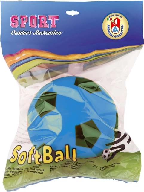 Balle souple de la marque Androni avec un diamètre de 12 cm, idéale pour jouer en intérieur grâce à sa mousse légère et sûre.
