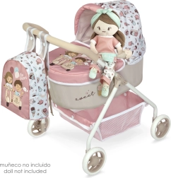 La poussette est équipée d'un matelas moelleux et d'un oreiller qui assurent le confort des poupées pendant les promenades. Elle est également accompagnée d'un sac à dos pratique où les enfants peuvent ranger de petits accessoires pour leurs poupées. Grâce à des roues robustes et à une structure stable, la poussette est sûre et facile à manœuvrer.