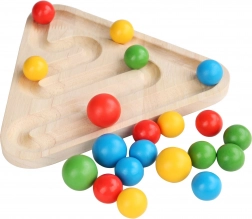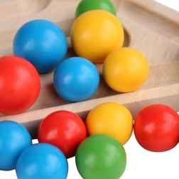 La planche réversible propose aussi un labyrinthe où les enfants font avancer les billes sur la piste sans les faire tomber. Ils exercent la coordination œil–main et entraînent leur patience.