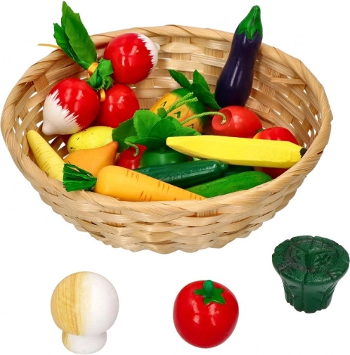Ce set coloré d’aliments en bois dans un panier est un excellent complément pour la cuisine des enfants comme pour le jeu de marchande. Des pièces peintes de manière réaliste comme la carotte, le maïs, la tomate ou la banane invitent les enfants à explorer, trier et nommer. Le bois durable garantit une longue durée de vie et un jeu en toute sécurité.