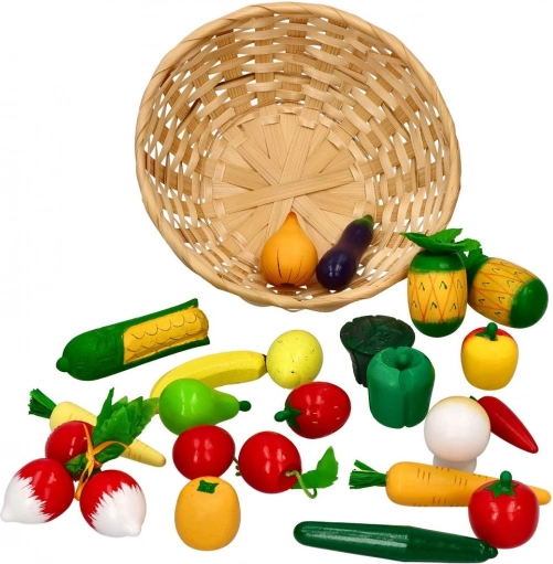 Le panier aux dimensions de 20 × 6,5 cm est pratique pour le rangement et le transport. Grâce aux 21 pièces, les enfants peuvent partager les rôles de vendeur et de client, développer la communication, les compétences sociales et apprendre à connaître les différents fruits et légumes.