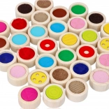 Le pexeso tactile en bois est idéal pour stimuler le toucher et les sensations sensorielles. Les pièces de jeu en forme de petits cylindres en bois massif ont un diamètre de 4 cm et 16 surfaces différentes. Le jeu peut être joué les yeux fermés pour défier la reconnaissance des mêmes surfaces ou comme un pexeso classique en plaçant les pièces côté couleur vers le bas.