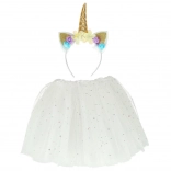 Ce ravissant costume de licorne apporte aux enfants joie et espace pour l’imagination. La jupe tutu légère à étoiles ondule joliment en mouvement, tandis que le serre‑tête à corne dorée et fleurs ajoute une touche féerique à l’ensemble.