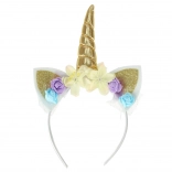 Serre‑tête confortable avec corne brillante, oreilles scintillantes et fleurs colorées pour compléter à merveille le costume de licorne.
