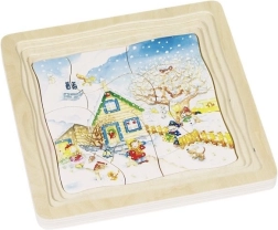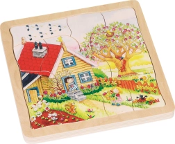 Ce puzzle en bois éducatif offre une combinaison unique d'amusement et d'apprentissage pour les enfants à partir de 3 ans. Chacune des quatre images représente une des saisons et enseigne les bases de la nature de manière ludique.
