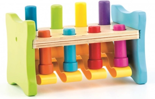 Le set comprend un socle robuste, 8 chevilles en bois et un marteau résistant. Le jouet est conçu pour la sécurité et la durabilité. La marque WOODY s’inscrit dans la tradition tchèque des jouets en bois de qualité et teste régulièrement ses produits selon les normes internationales, dont beaucoup portent le label « Jouet sûr ».