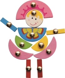 Les pièces en bois colorées avec attaches métalliques sont faciles à saisir et développent la motricité fine, entraînent la coordination œil–main et l’apprentissage des couleurs et des formes.