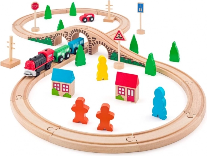 Ce circuit de train en bois offre aux enfants des heures de divertissement et d’imagination. La locomotive à piles met facilement la rame en mouvement et les enfants peuvent créer leurs propres histoires ferroviaires. Le jeu développe la motricité fine, la pensée logique et la patience.