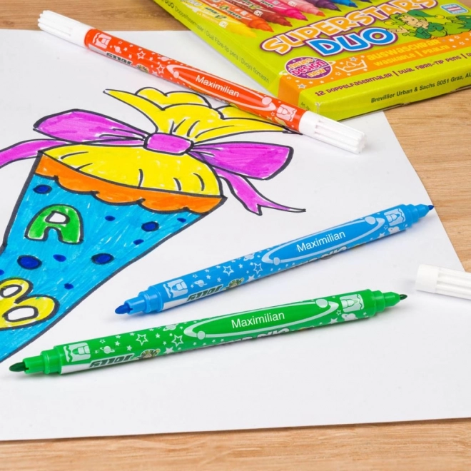 Feutres double pointe Superstars Duo, set de 12 couleurs