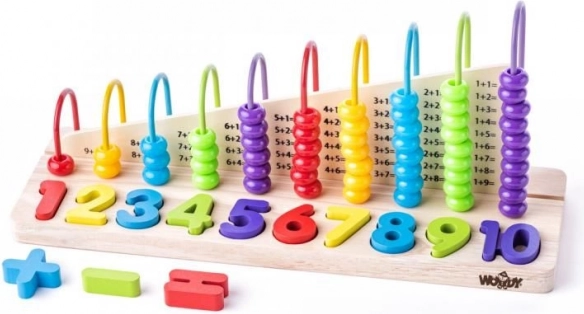 Cet abacus aide les enfants à pratiquer l'addition et la soustraction tout en servant de puzzle éducatif pour les plus jeunes qui apprennent encore les chiffres de 1 à 10.