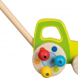 Le tracteur en bois à tige est conçu pour encourager les enfants à bouger et à explorer. Fabriqué en bois massif, il offre robustesse et durabilité. Les perles sur les roues arrière émettent des sons lors de la marche, stimulant davantage les sens des petits explorateurs.