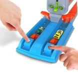 Un lanceur mécanique à deux voies propulse les voitures simultanément – idéal pour les duels tête‑à‑tête et tester les réflexes, sans piles.