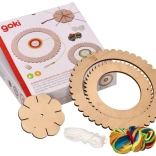 Ce kit de tricot Goki en bois de haute qualité offre aux enfants comme aux adultes une expérience apaisante de travail manuel. Grâce à deux cadres ronds de diamètres 22, 16 et 10 cm et à la fleur à tricoter, vous créez facilement des mandalas originaux, des sous-verres, des décorations ou de petits accessoires textiles. Le kit favorise la concentration, la coordination œil-main et le sens esthétique.
