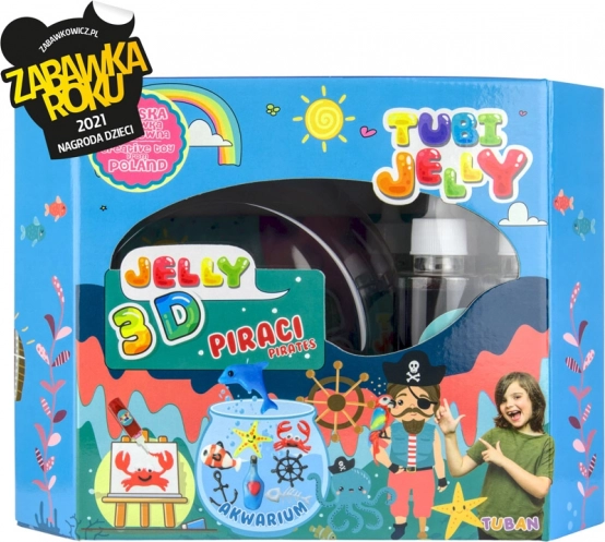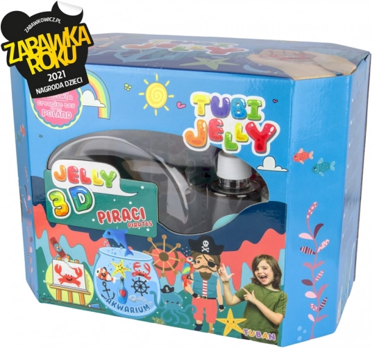 Kit créatif Tubi Jelly pirates 3D avec grand aquarium 3,7 l. Créez des figurines en gel colorées : 8 couleurs, activateur, cristaux d’eau, pochoirs.