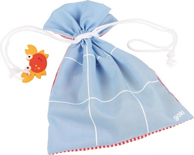 Découvrez le charme d’un jeu classique avec une touche nouvelle grâce à Goki Morpion en bois ! Ce jeu est conçu pour être facile à transporter grâce à un sac en coton orné d’un crabe, qui sert également de plateau de jeu. Le jeu comprend :
