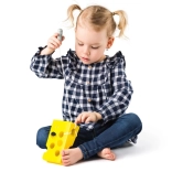 L’enfant guide la souris à travers le « fromage », essaie différents chemins et développe patience et raisonnement logique.