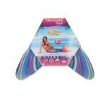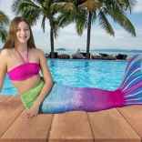 La queue est fabriquée à partir de matériaux durables et conçue pour offrir un ajustement confortable grâce à une monopalme réglable. Elle est disponible dans de superbes couleurs dégradées rose, vert et bleu, rappelant les écailles scintillantes des sirènes.