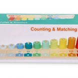 En enfilant des anneaux colorés sur les tiges, les enfants comprennent facilement les quantités et l’ordre des nombres. Une excellente base pour les premières compétences mathématiques.