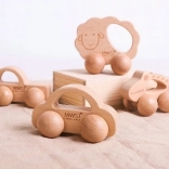 La voiture en bois est soigneusement lissée avec des formes arrondies, idéales pour les petites mains d'enfants. Elle est recommandée pour les enfants de plus de 6 mois.