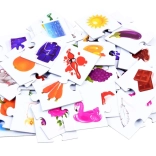 - Version de base pour les plus jeunes – l’enfant pioche une carte avec une tache de couleur et doit trouver trois pièces de puzzle correspondant à sa carte.