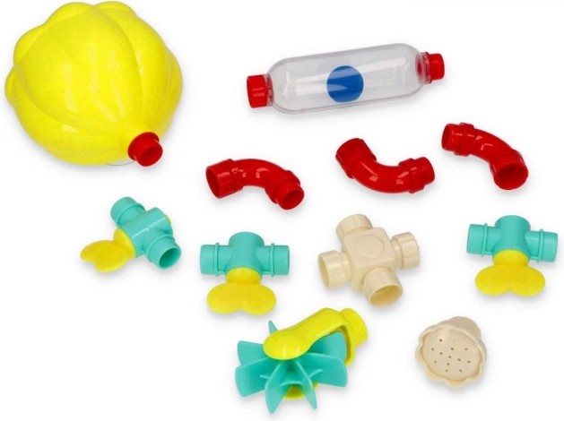 L’ensemble est conçu pour un jeu sûr dans la baignoire – composants en plastique de qualité, bords lisses et entretien facile. Les pièces peuvent être réagencées pour créer de nouveaux circuits d’eau, prolongeant le plaisir et stimulant la créativité.