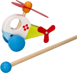 L’hélicoptère en bois avec tige de Goki apporte beaucoup de plaisir aux enfants qui apprennent à marcher. Il est fabriqué en bois massif, garantissant une longue durée de vie et une sécurité lors du jeu. Grâce à son design coloré et à ses éléments mobiles, tels que le rotor et les roulettes, il captive chaque petit explorateur.